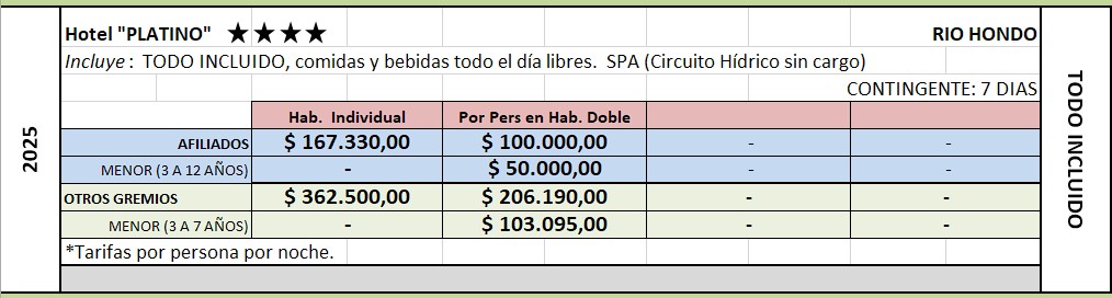 TODO INCLUIDO: Comidas y Bebidas todo el día libres.