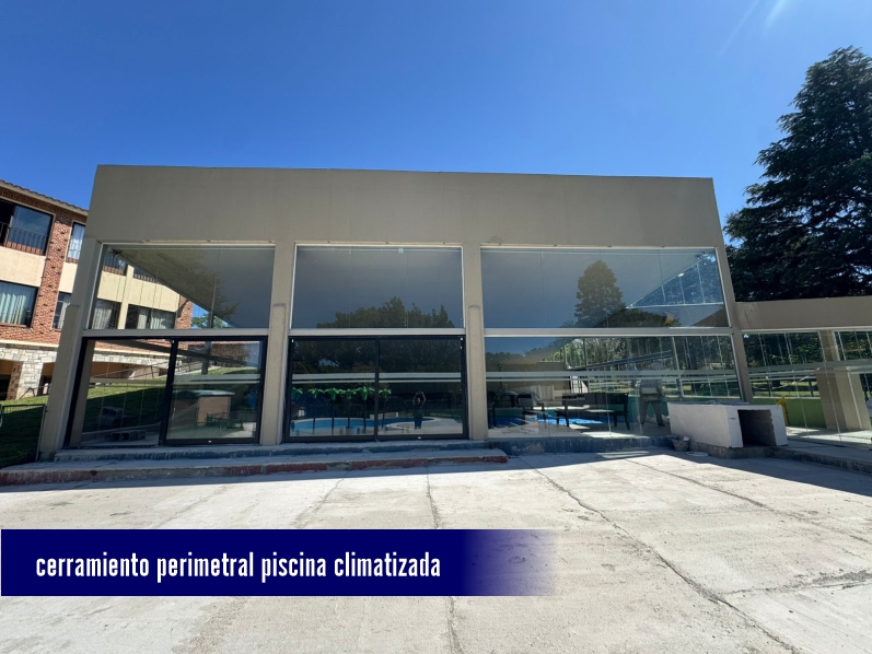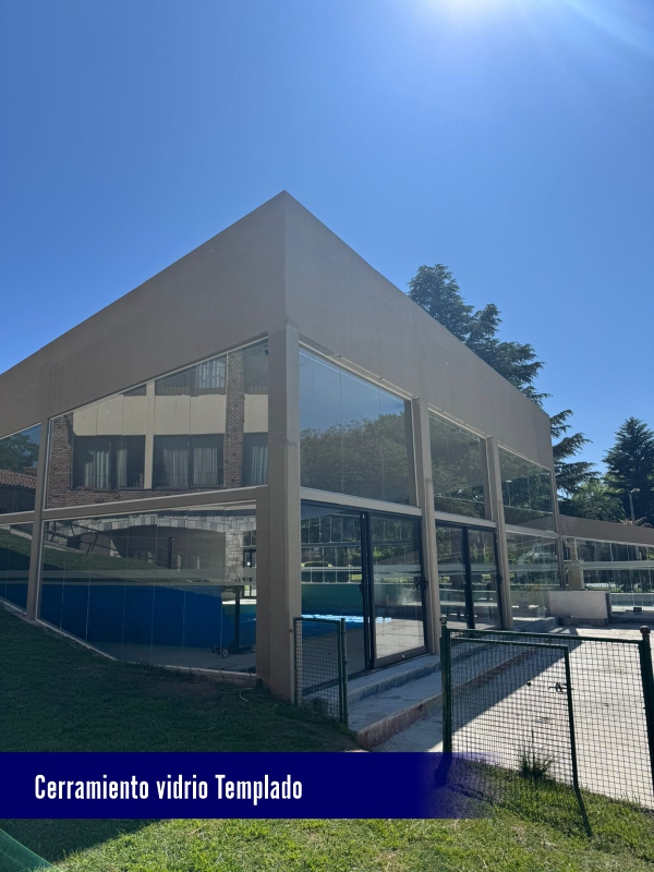 a) El cerramiento total de la pileta climatizada con vidrios templados