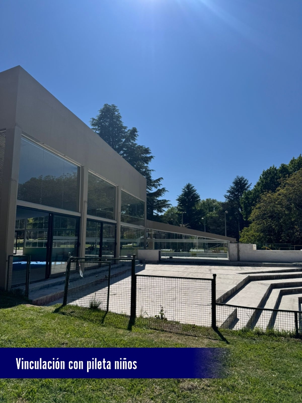 d) La vinculación peatonal entre la pileta principal y la de niños